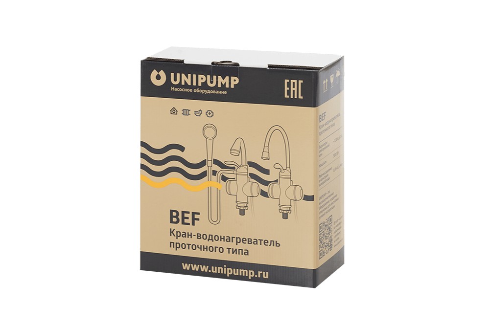 Электрические проточные водонагреватели серий BEF и BKF предназначены для быстрого нагрева холодной воды, поступающей из центральной или автономной системы водоснабжения, прямо у точки водоразбора.Модель UNIPUMP BEF-001-02 с дисплеем и гибким изливом из метала, что делает его удобным в использовании. Этот проточный водонагреватель устанавливается на смеситель и оснащен регулятором температуры и подачи воды, который управляется поворотом ручки. На корпусе водонагревателя имеется цифровой дисплей или световой индикатор режима нагрева для удобства контроля температуры. Излив крана может вращаться на 360°, обеспечивая легкое направление потока воды. Модели, оснащенные душевой лейкой, имеют устройство защитного отключения на электрокабеле для безопасности.