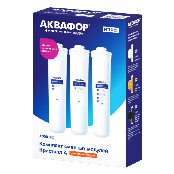 Комплект сменных модулей для глубокой очистки и умягчения воды низкой и средней жесткости. Эффективно снижает образование белого налета. Модуль с ионообменной смолой подлежит регенерации, которую в зависимости от жесткости воды необходимо проводить в срок до 3 месяцев.