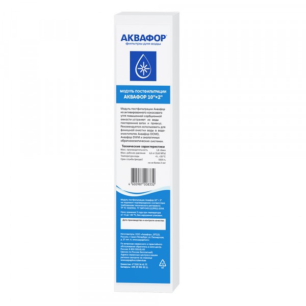 Сменный модуль из активированного кокосового угля повышенной сорбционной ёмкости. Применяется для финишной очистки воды в системах Аквафор Осмо 100, 50 исп. 5,6. Необходим для устранения постороннего привкуса и запаха, которые могут появиться при длительном хранении воды в накопительном баке.
